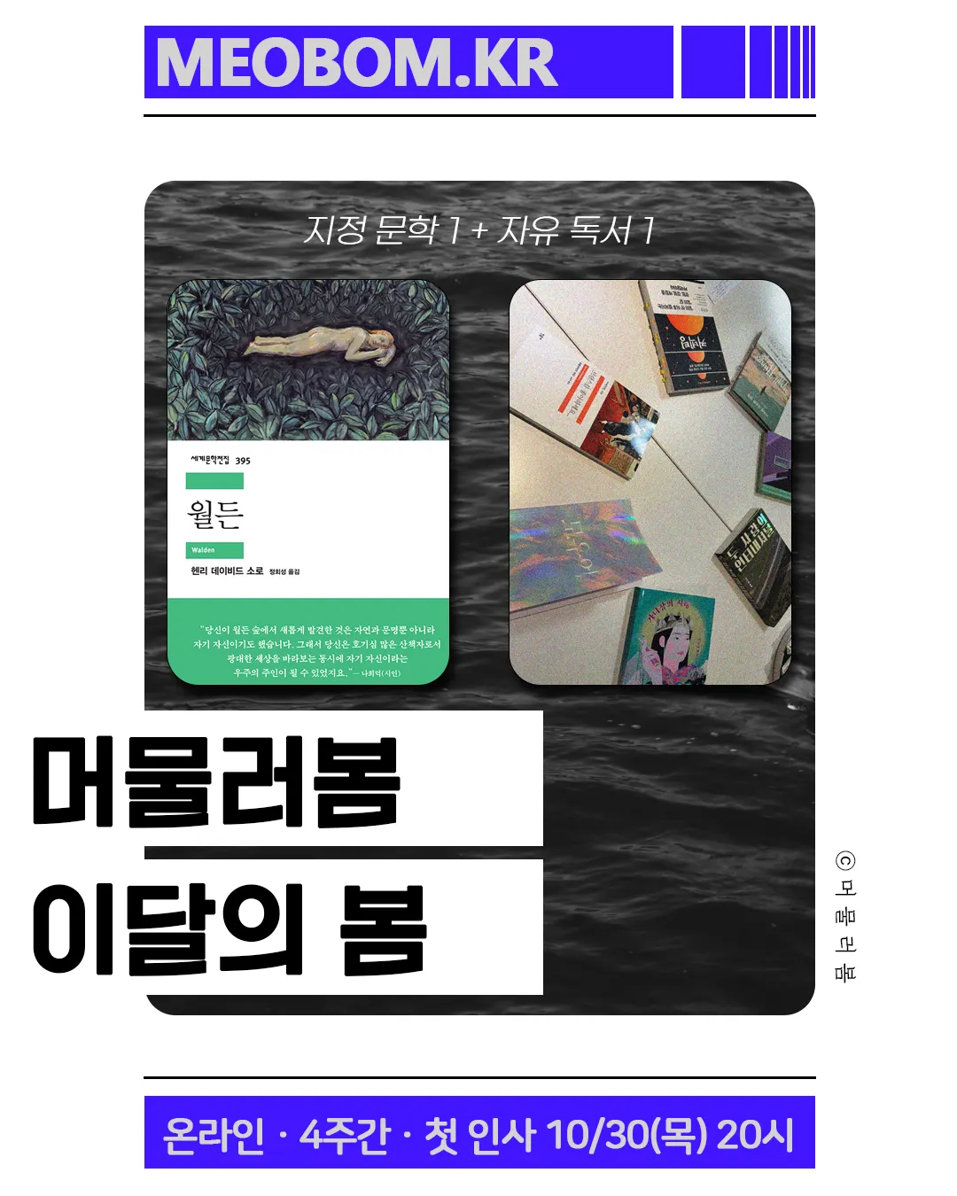 그 환상적인 우연들을 함께 마주합시다. [머물러봄, 이달의 봄]에선 책을 통해 얻은 환희, 책을 통해 마주한 고민&질문을 멤버들과 나누고 삶의 영감을 회득합니다.