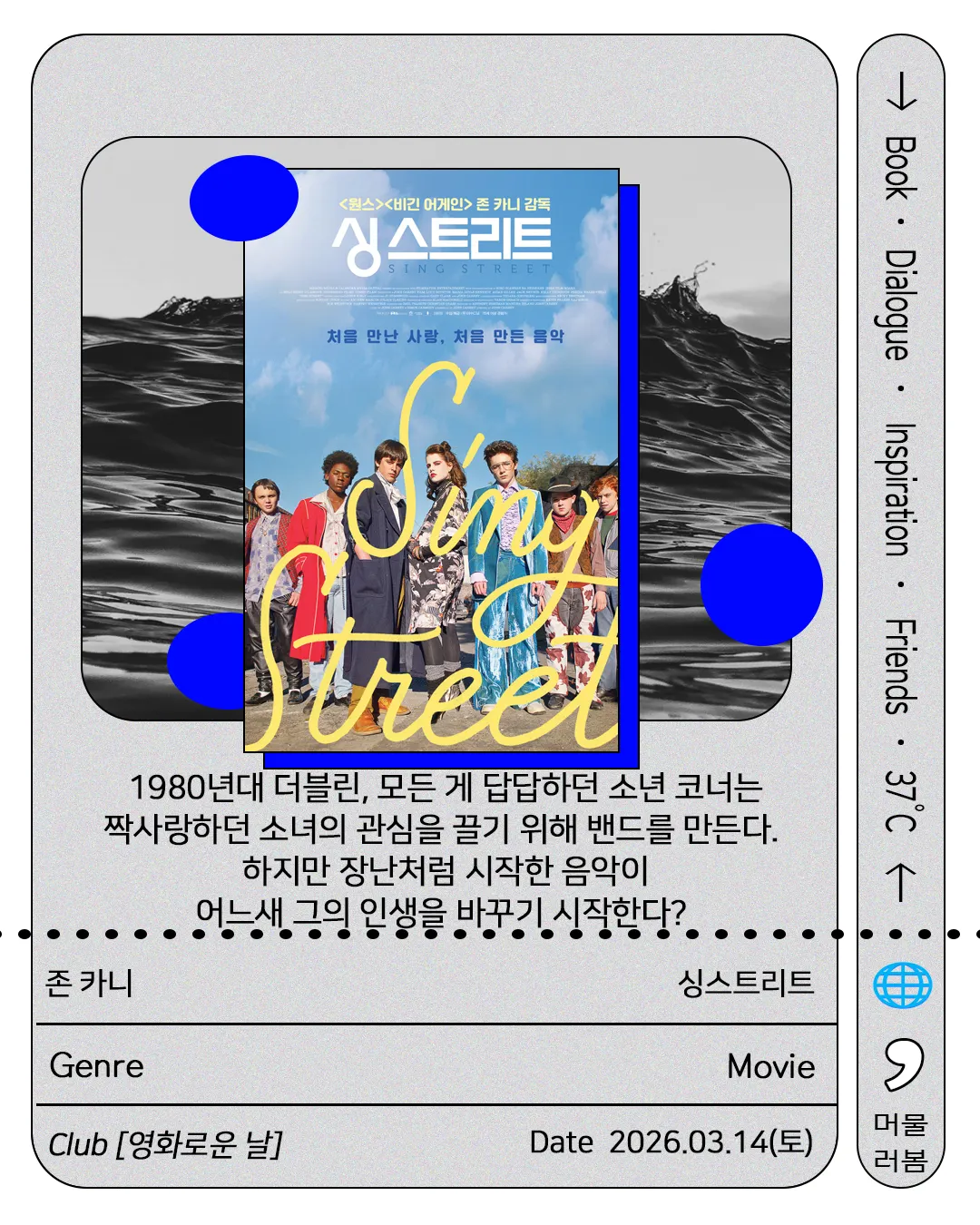 영화를 좋아한다는 건, 등장인물의 이야기에 관심이 있다는 것이고, 이는 곧 ‘사람’을 향한 온정이 있음을 뜻하는 게 아닐까요? 우리 만나서 즐거운 시간 함께 만들어봐요