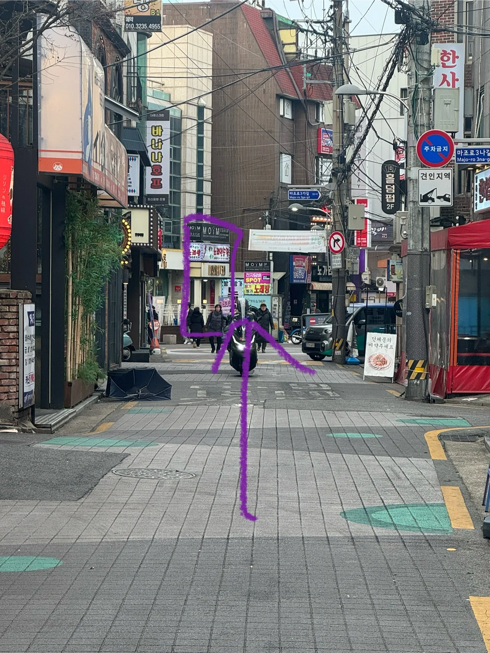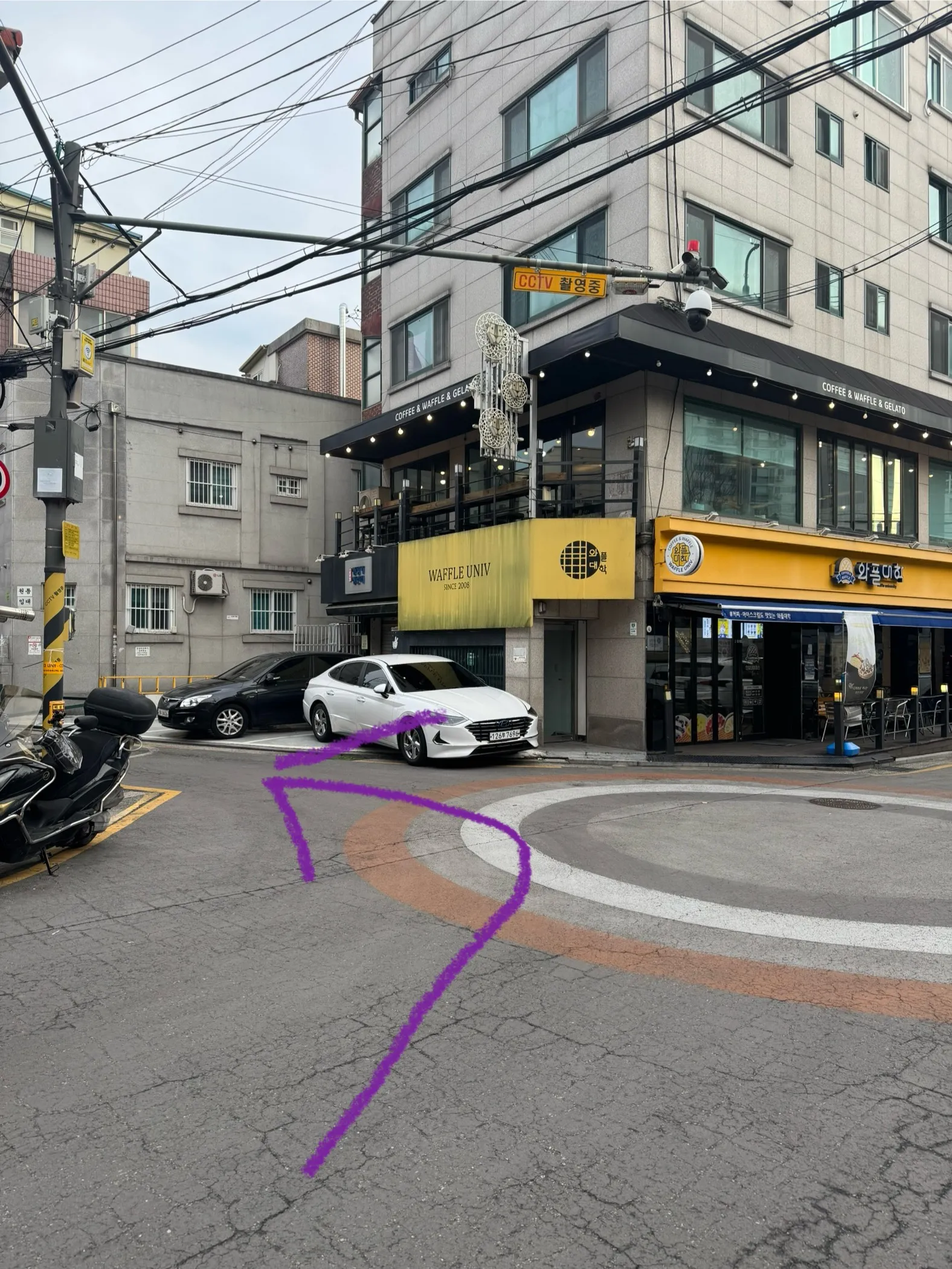 “와플 대학”이 보이면 → “좌측”방향으로 직진합니다. (거의 다 왔어요!)