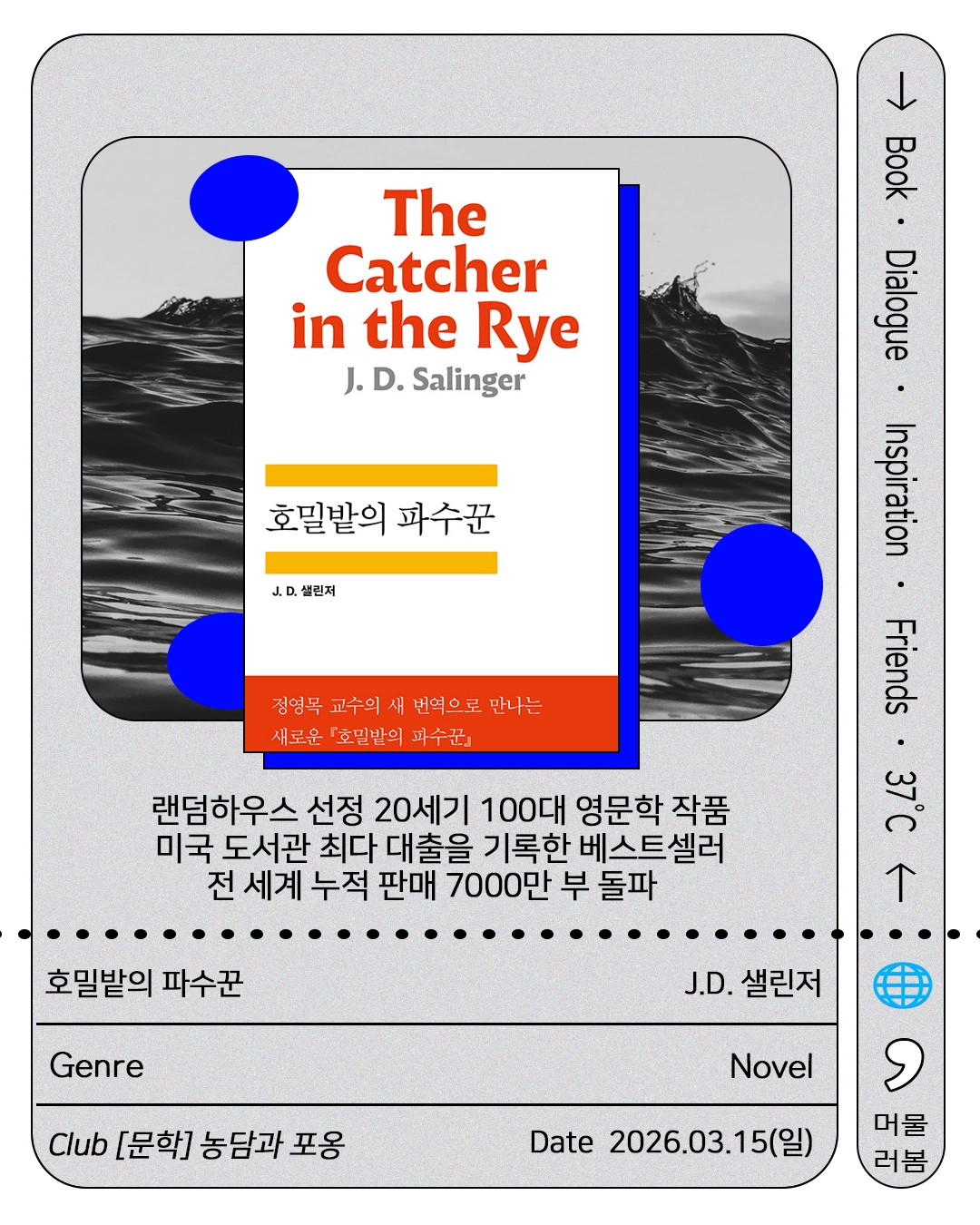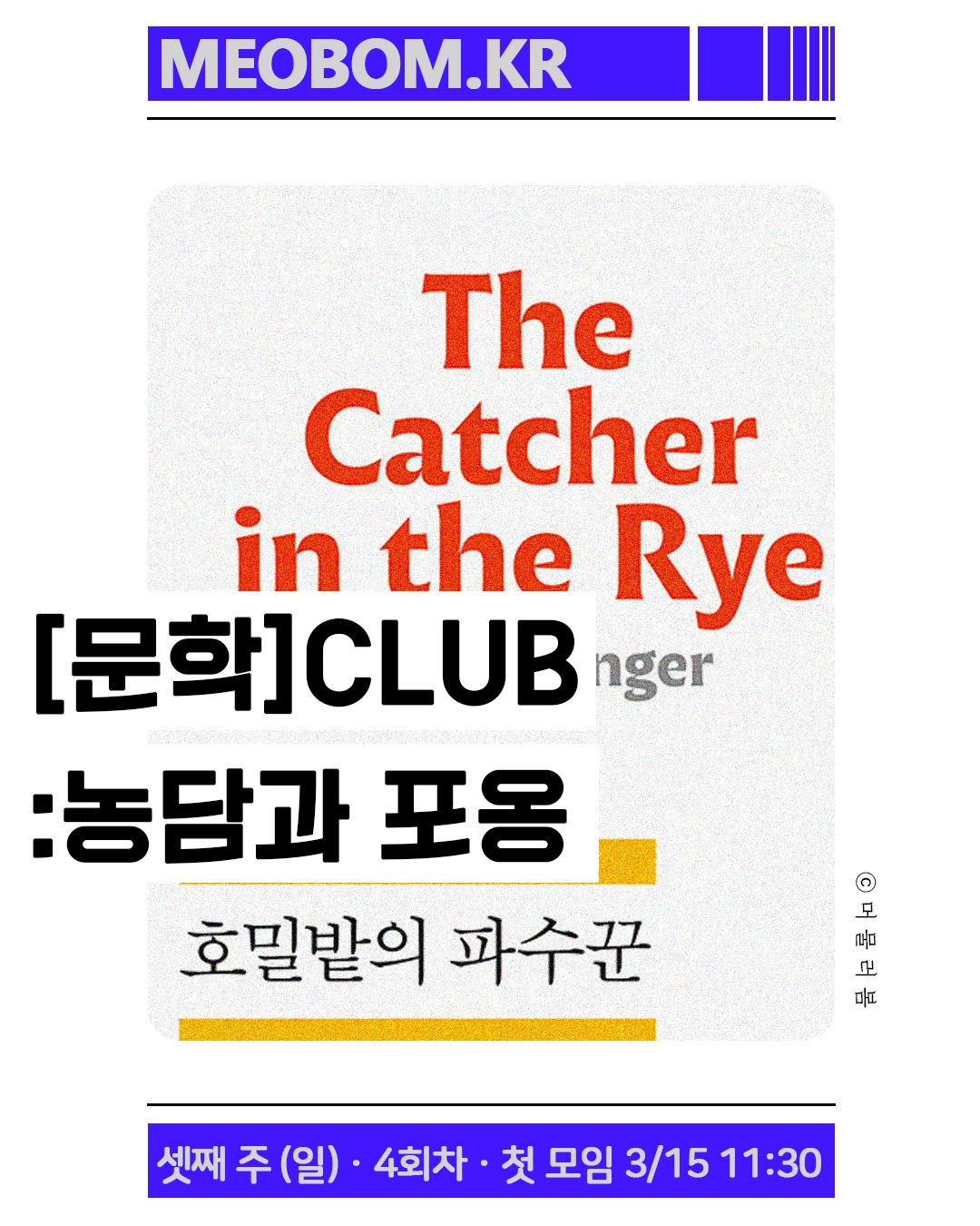 [문학-농담과 포옹] 은 문학의 가치를 믿고, 경험하고 싶은 분들 모두 환영합니다. 우리는 그저 광활한 문학의 세계를 맘껏 누비면 그만입니다. 그런 동안 한껏 충만해진 나를 발견해봅시다.